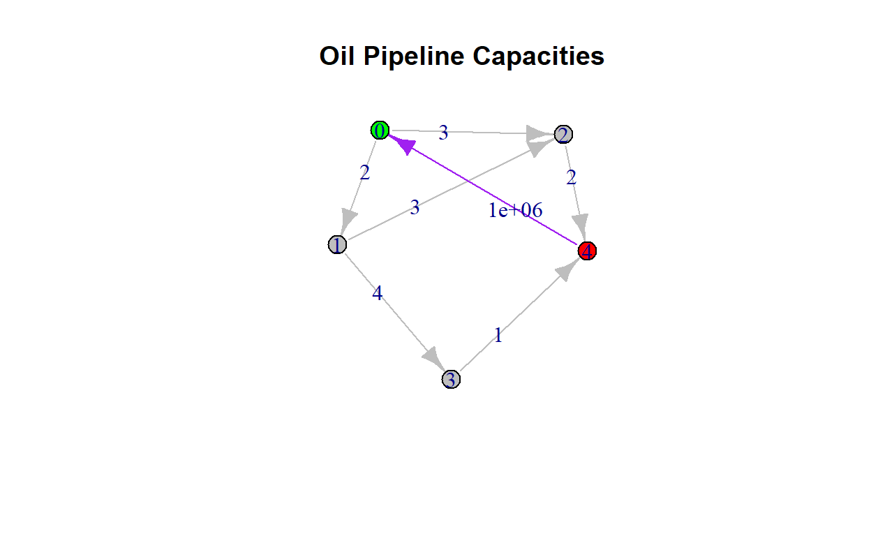 edges <- data.frame(from = c(0,0,1,1,3,2), to = c(1,2,2,3,4,4), capacity = c(2,3,3,4,1,2))