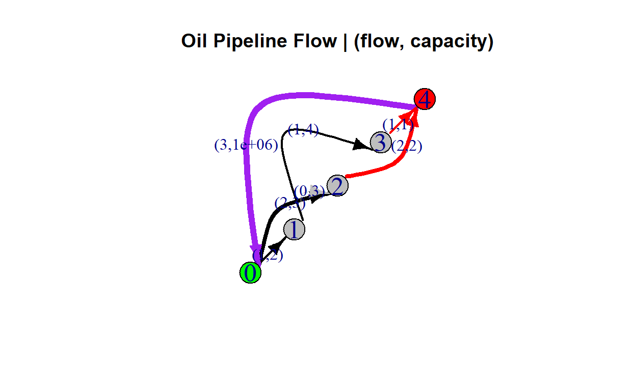 edges <- data.frame(from = c(0,0,1,1,3,2), to = c(1,2,2,3,4,4), capacity = c(2,3,3,4,1,2), color = "grey")