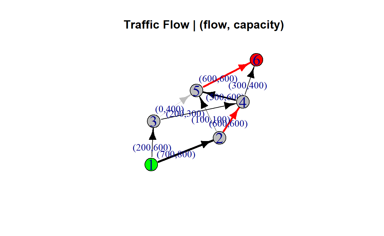 main = "Least Time Maximum Vehicle Flow | (flow, capacity)")