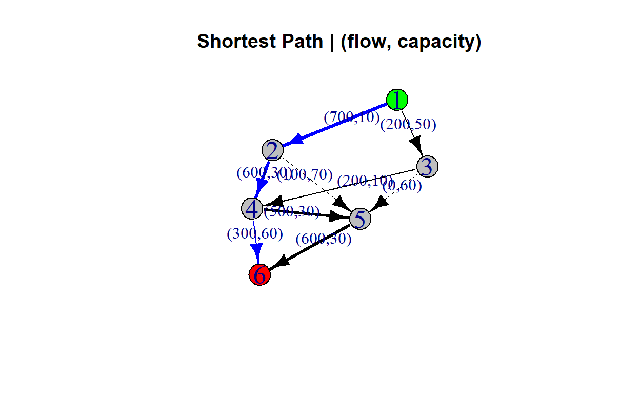 lp.mincost.maxflow(edges = edges, source.id = 1, dest.id = 6, flow.demand = 900)