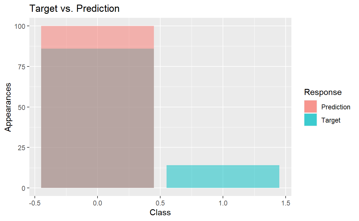 geom_bar(aes(x=y_true, fill="Target"), alpha = 0.5) +