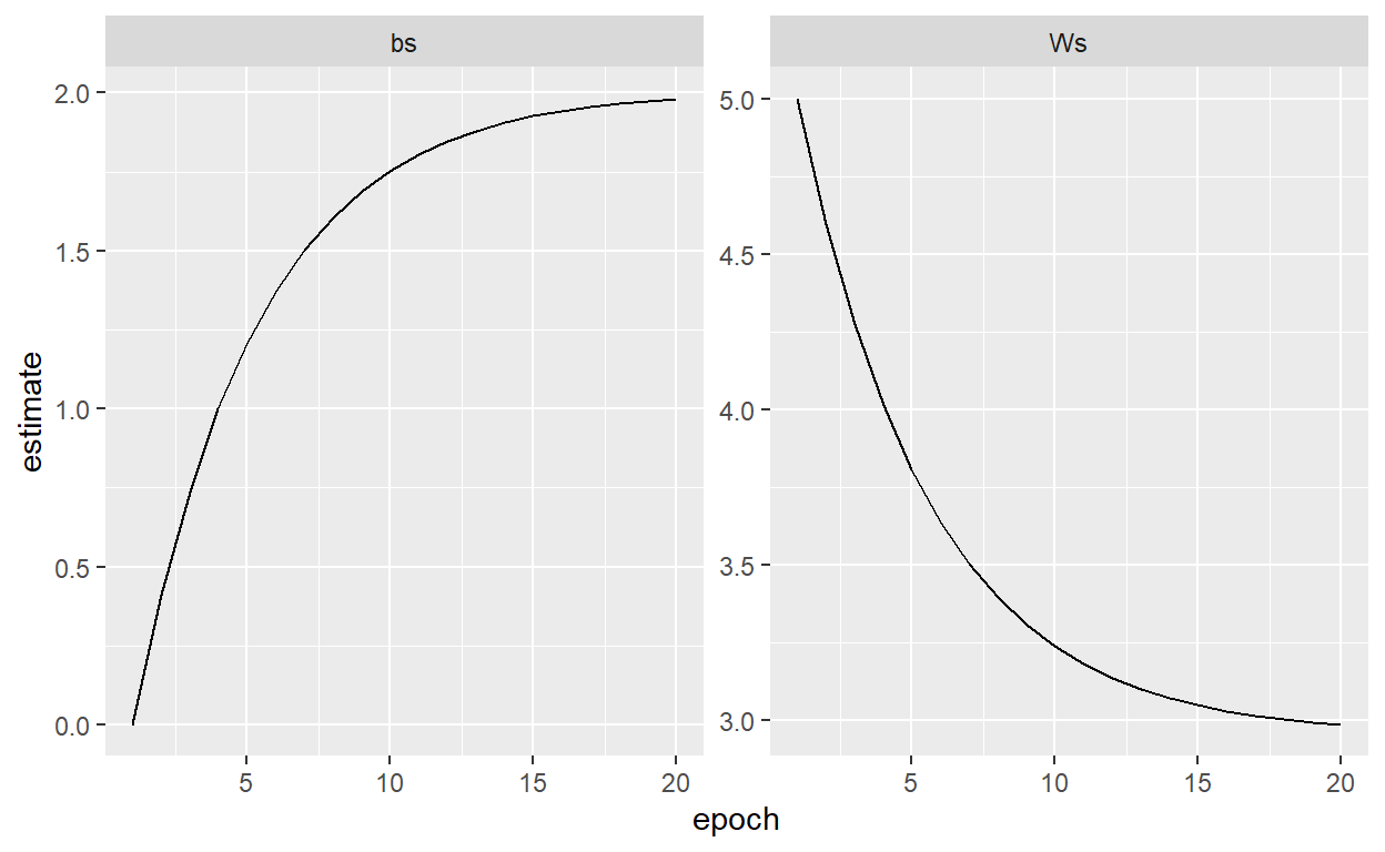 ggplot(df, aes(x=epoch, y=estimate)) +