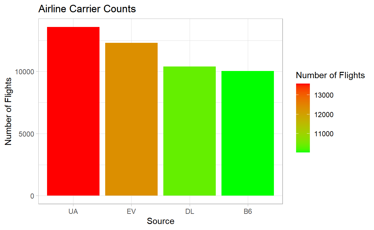 scale_colour_gradient(low = "red", high = "green") +