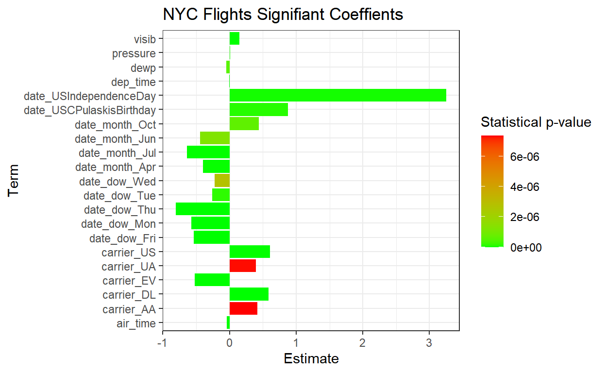 labs(color = "Statistical p-value", x = "Estimate", y = "Term") +