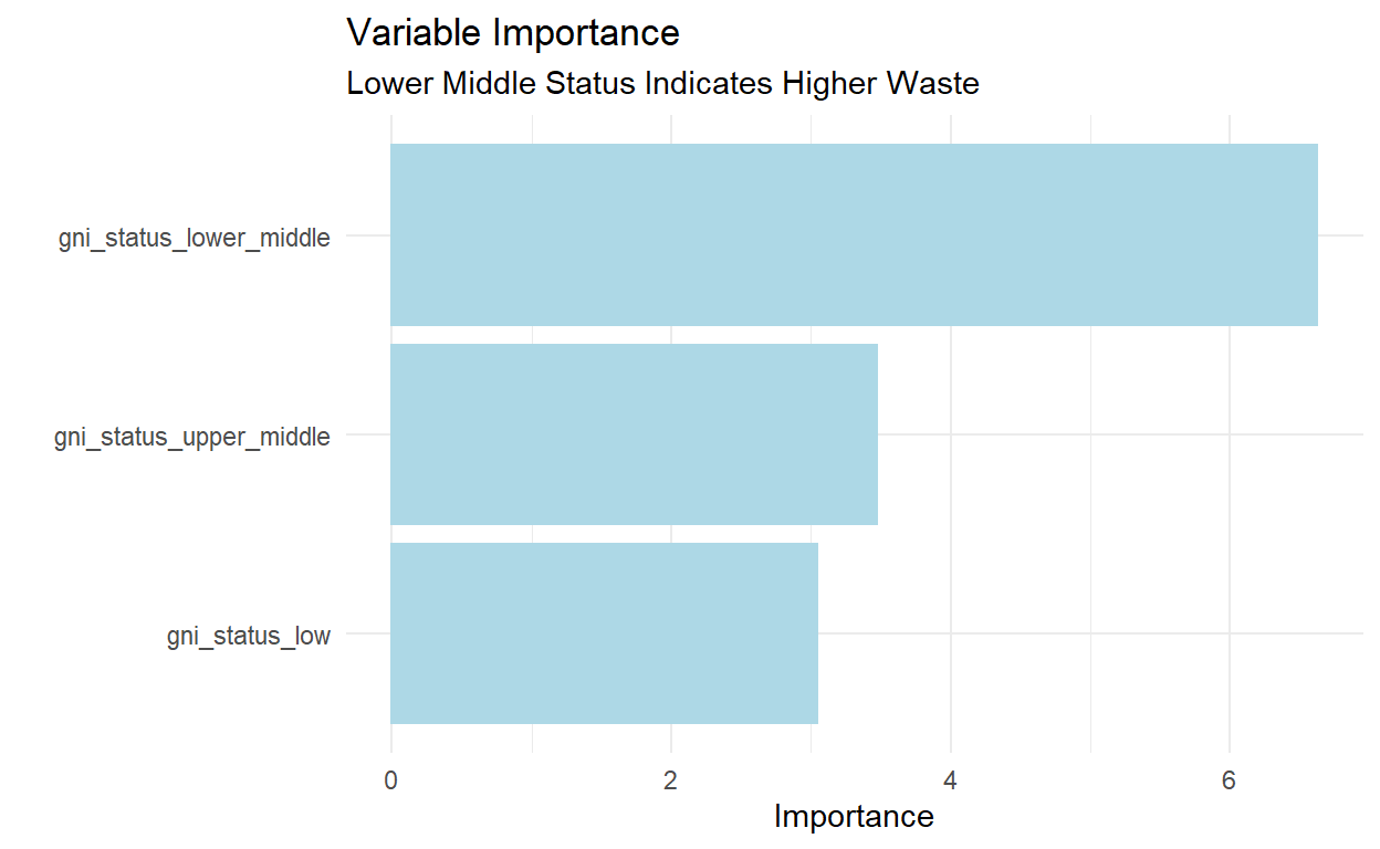 ggtitle("Variable Importance", subtitle = "Lower Middle Status Indicates Higher Waste")